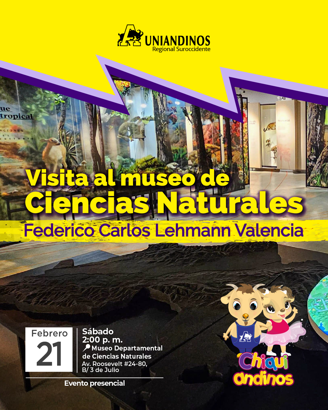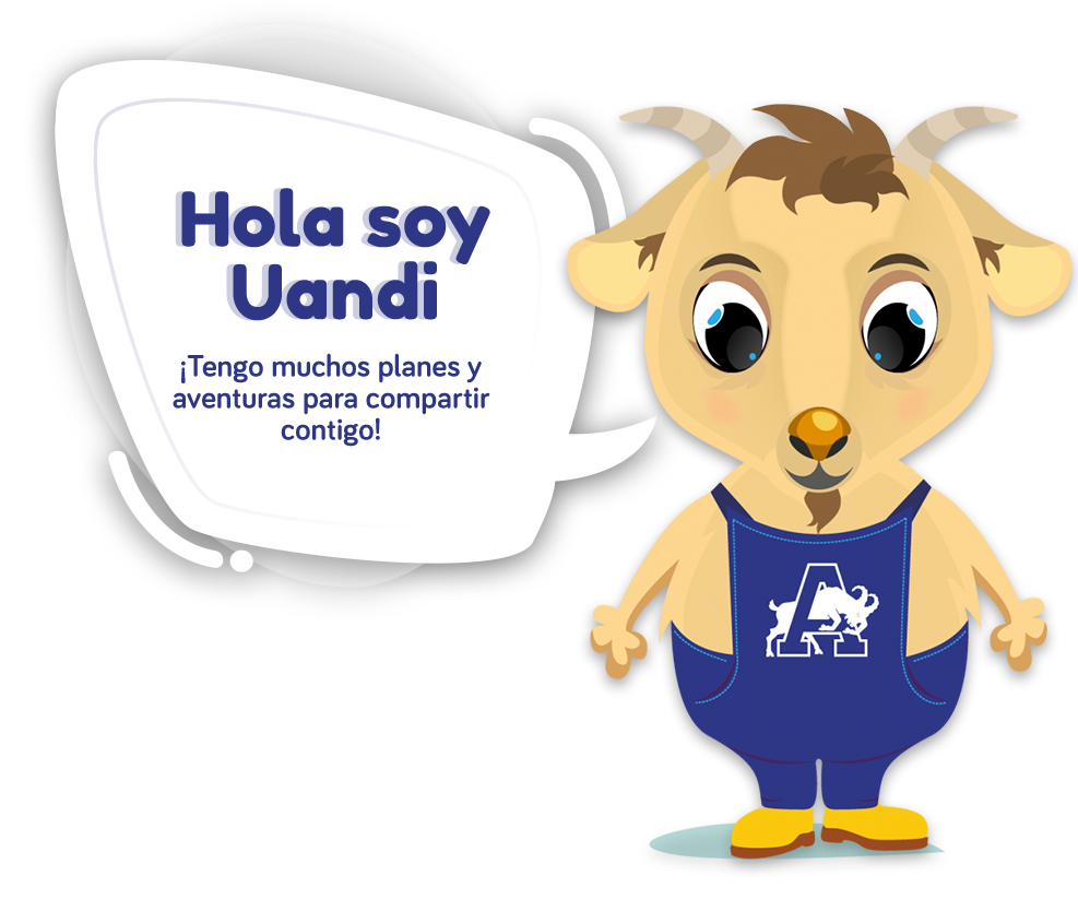 Uandi es nuestro cabrito, un pequeño alegre y listo. Asiste al colegio y tiene muchos amigos, le gusta salir a hacer deporte y compartir con su familia. A Uandi le encanta compartir sus experiencias y tiene muchas historias que contar, por eso ha llegado al club Chiquiandinos donde quiere conocer a cientos de amiguitos.